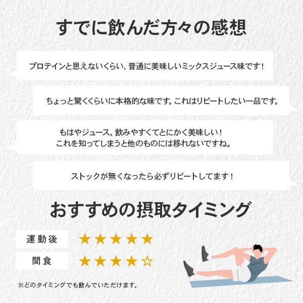 乳清たんぱく(外国製造)、脱脂粉乳、食塩、乾燥酵母/クエン酸、香料、甘味料(スクラロース、ステビア、アセスルファムK)、乳化剤、ビタミンC、ビタミンB6、(一部に乳成分・大豆を含む) |